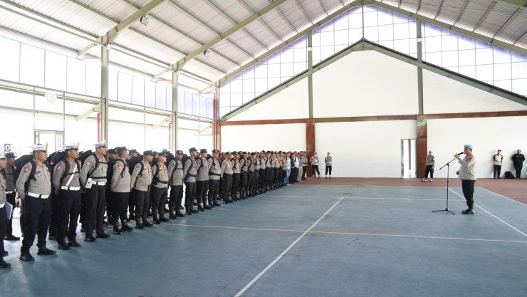 Sebelum dikerahkan, ratusan anggota BKO Polda Maluku ini mengikuti apel pengecekan personel yang dihelat di gedung sport center, Mapolda Maluku, Jumat (15/11/2024).