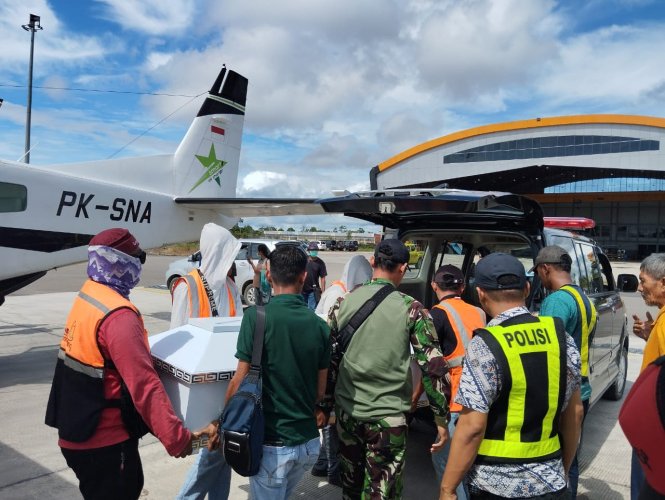 "Saat ini kedua Jenazah telah disemayamkan dirumah duka keluarga dan saudara di Kota Timika, rencana kedua jenazah akan diterbangkan pada esok hari ke kampung halamannya masing-masing yakni ke Tanah Toraja dan Alor", ujar Kabid Humas.
