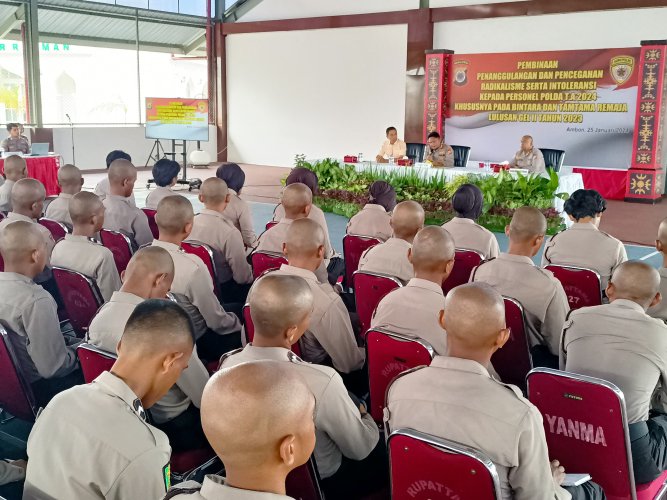 Papuanewsonline.com, Ambon - Sebanyak 210 orang personel Bintara dan Tamtama Polda Maluku gelombang kedua tahun 2023, mengikuti sosialisasi tentang penanggulangan bahaya radikalisme dan intoleransi.