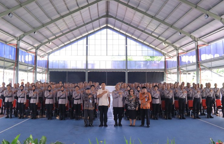 "Paham radikalisme dan intoleransi itu seperti virus yang kapan saja bisa menyebar dan siapa saja bisa terpapar. Maka saya minta adik-adik semua harus punya ketahanan diri yang kuat, sebab kita ini adalah pelindung pengayom dan pelayanan masyarakat," ungkapnya. PNO-11