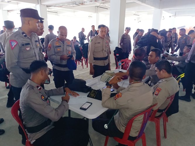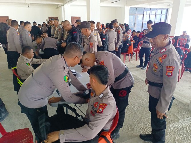 Papuanewsonline.com, Ambon - Ratusan personel Polda Maluku yang dikerahkan sebagai pasukan pengamanan TPS di 11 Polres/ta Jajaran menjalani pemeriksaan kesehatan. Tes kesehatan sebelum diberangkatkan ke daerah penugasan berlangsung di gedung Plaza Presisi Manise, Tantui, Kota Ambon, Senin (5/2/2024).