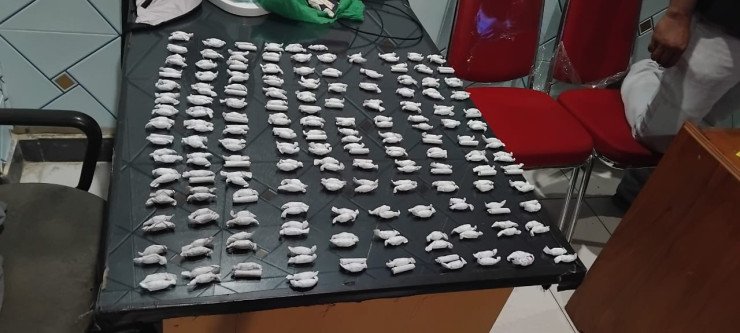 “Pada saat tertangkap tangan, kedua tersangka membawa 119 (seratus sembilan belas) bungkus plastik bening ukuran Besar yang berisi narkotika jenis ganja, 275 (dua ratus tuju puluh lima) paket Ganja yg di isi dalam kertas putih, 1 (satu) Unit Handphone vivo Warna biru,” tuturnya.