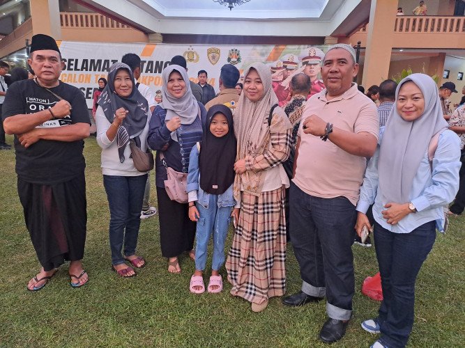 Keluarga Rifda Indriyani Basir Catar Akpol asal Polda Sultra yang lolos seleksi tingkat pusat. Mereka hadir di GSG Akpol, Kota Semarang, Minggu (28/7/2024). PNO-12