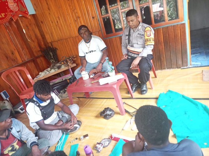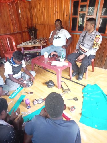 Papuanewsonline.com, Jayapura - Anggota Bhabinkamtibmas Kampung Wesakma Bripka Jhon Stenly K. Rewang ajak masyarakat binaannya menjaga Keamanan menjelang Pemilu 2024, Selasa (24/10) siang.
