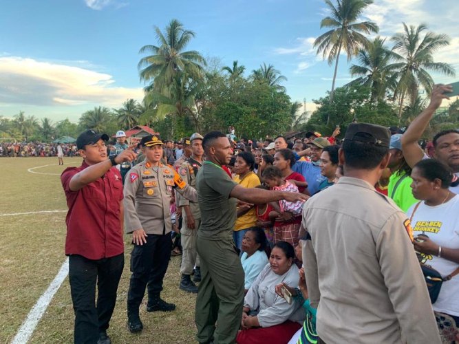 Papuanewsonline.com, Biak Numfor - Aparat Gabungan yang dipimpin Kapolda Papua Irjen Pol. Mathius D. Fakhiri, S.I.K dan Pangdam XVII/Cenderawasih Mayjen TNI Izak Pangemanan, M.Han ketat memberikan pengamanan di Lapangan Sepak Bola Sorido, Kabupaten Biak Numfor, Provinsi Papua, pada Rabu (22/11/2023).