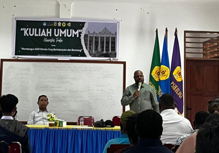 saat membawakan kuliah umum di Universitas Timika bertajuk “Membangun SDM Mimika yang Berkelanjutan