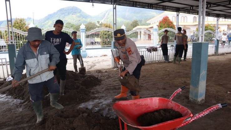 Bangkit dari Duka Bencana, Polisi dan Warga Sinergi Bersihkan Masjid Syuhada