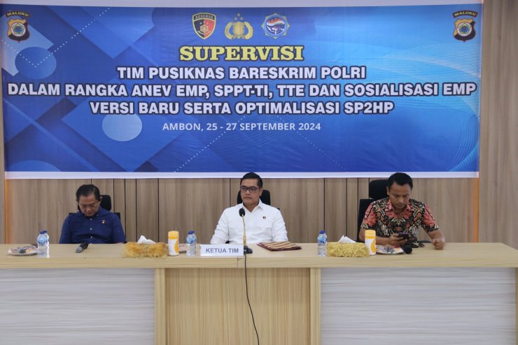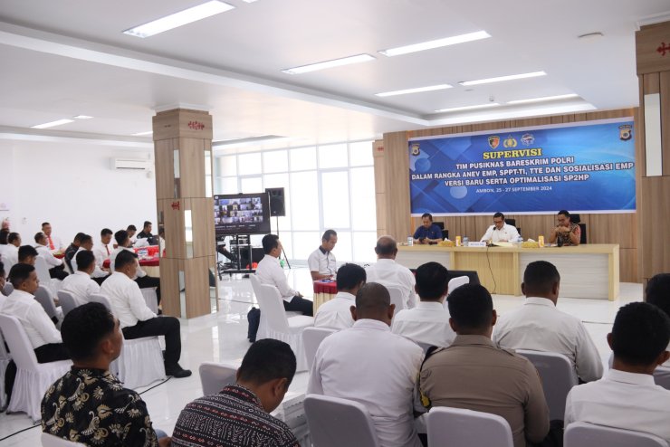 Papuanewsonline.com, Ambon - Tim Pusiknas Bareskrim Polri melakukan supervisi di Polda Maluku untuk analisa dan evaluasi EMP, SPPT-TI, TTE dan sosialisasi EMP versi baru serta Optimlisasi SP2HP.