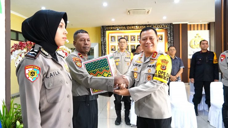 Papuanewsonline.com, Ambon - Kapolda Maluku Irjen Pol Drs. Lotharia Latif SH., M.Hum menyerahkan bingkisan parcel lebaran Idul Fitri 1445 Hijriah kepada perwakilan personel Polda Maluku yang beragama muslim.
