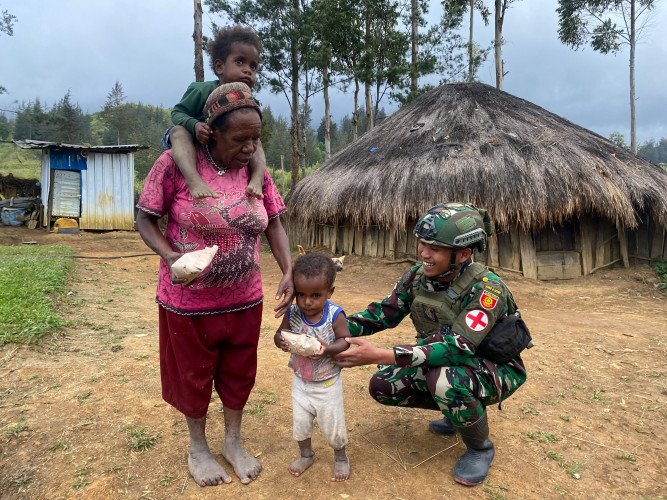 Papuanewsonline.com, Puncak - Satgas Mobile Yonif 323 Buaya Putih, terus menjalin kebersamaan antara personel Pos Gome dengan Masyarakat melalui kegiatan Minggu kasih dengan membagikan makanan Kepada masyarakat Papua di Kp Jenggernok, Distrik Ilaga, Kabupaten Puncak, Papua Tengah. Minggu (04/08/2024).