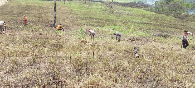 Bersihkan Lahan 1 Hektare, Polsek Nirunmas Bersama Pemdes Waturu Siap Tanam Jagung Hibrida