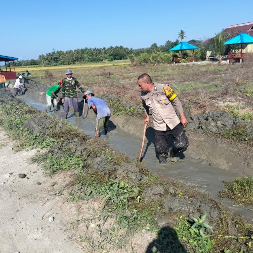 Bhabinkamtibmas Desa Waihatu prakarsai Kerja Bhakti Bersama Warga Bersihkan Saluran Irigasi