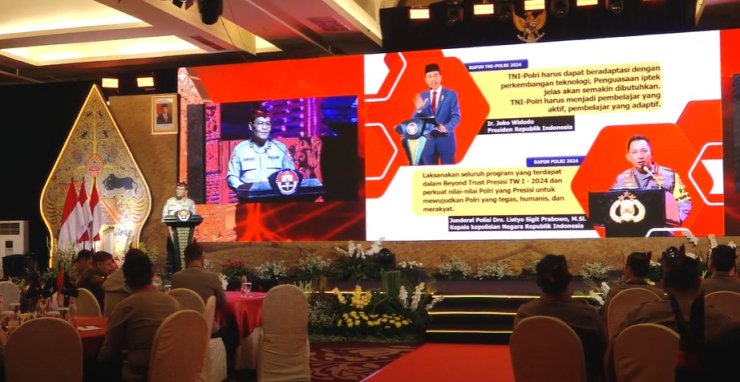 Papuanewsonline.com, Surabaya - Polri menggelar Rakernis Humas tahun anggaran 2024 dengan tema “Divisi Humas Polri Siap Mendukung Stabilitas Kamtibmas yang Kondusif Dalam Proses Demokrasi Guna Percepatan Transformasi Ekonomi yang Inklusif dan Berkelanjutan”. Acara ini berlangsung dari Senin, 22 April 2024 hingga Rabu, 24 April 2024 di Surabaya.