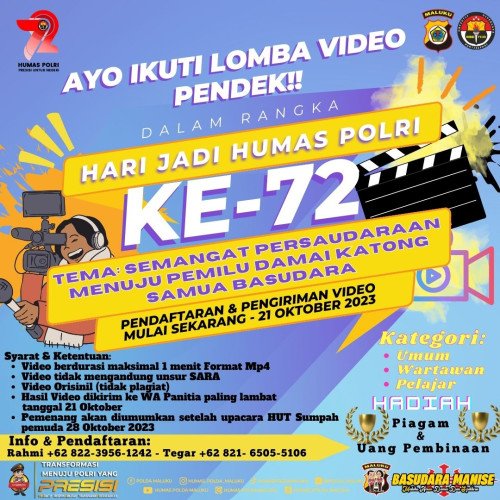 Kabid Humas Polda Maluku Kombes Pol M. Rum Ohoirat mengatakan, lomba video pendek yang dibuka terdapat tiga kategori. Diantaranya kategori umum, wartawan dan pelajar.