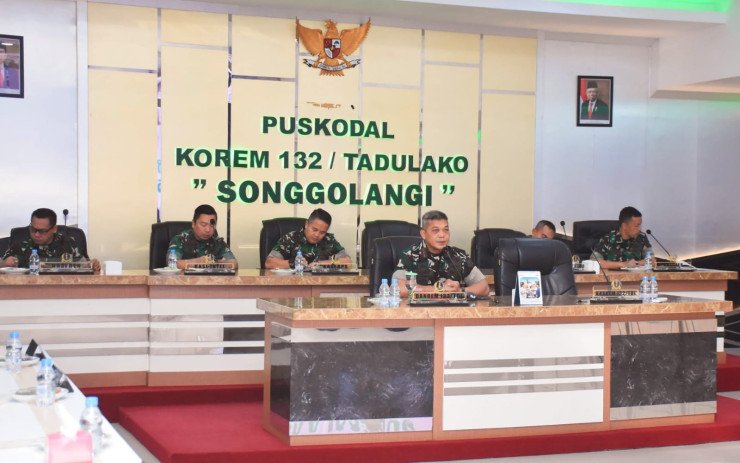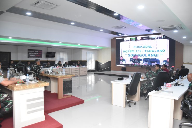 Papuanewsonline.com, Palu - Danrem 132/Tdl Brigjen TNI Dody Triwinarto, S.I.P., M.Han., memberikan pengarahan kepada seluruh satuan jajaran Korem 132/Tdl melalui Vicon di Aula Songgolangi Puskodal Korem 132/Tdl Jl. Jenderal Sudirman No. 25, Kota Palu, Jumat, (21/06/2024)
