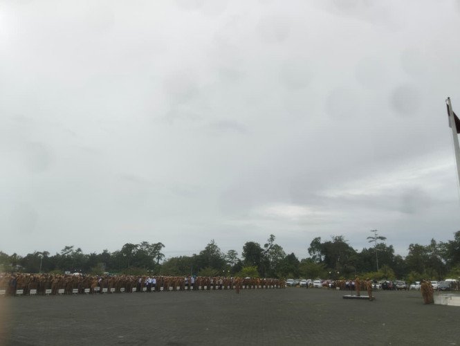 Bupati Mimika, Johannes Rettob, menegaskan kedisiplinan administrasi kepegawaian dalam apel pagi di Kantor Pusat Pemerintah Kabupaten Mimika