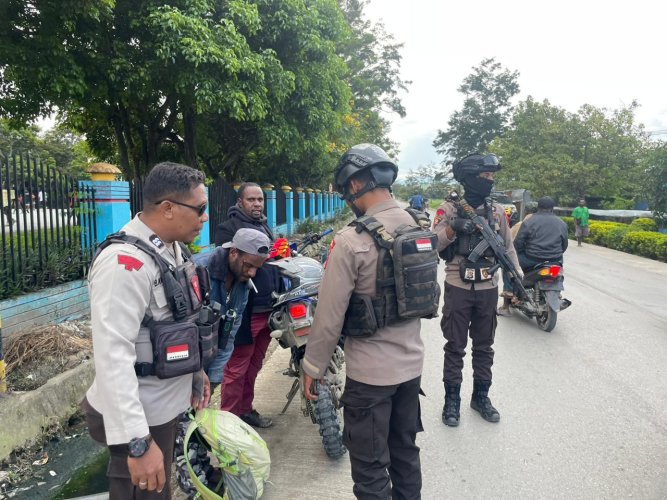 Papuanewsonline.com, Wamena – Dalam upaya menjaga stabilitas keamanan dan ketertiban masyarakat (Kamtibmas) di Kota Wamena, Polres Jayawijaya menggelar razia di perempatan Jalan Irian-Sudirman pada Kamis (6/6) sore.