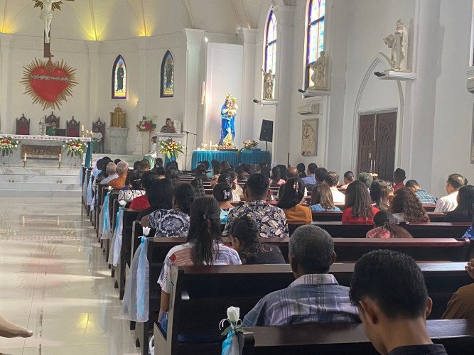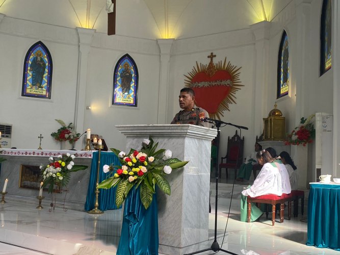 Ciptakan Situasi Kondusif, Satgas OMB Polda Maluku Gelar Minggu Kasih Di Gereja Paroki Hati Kudus