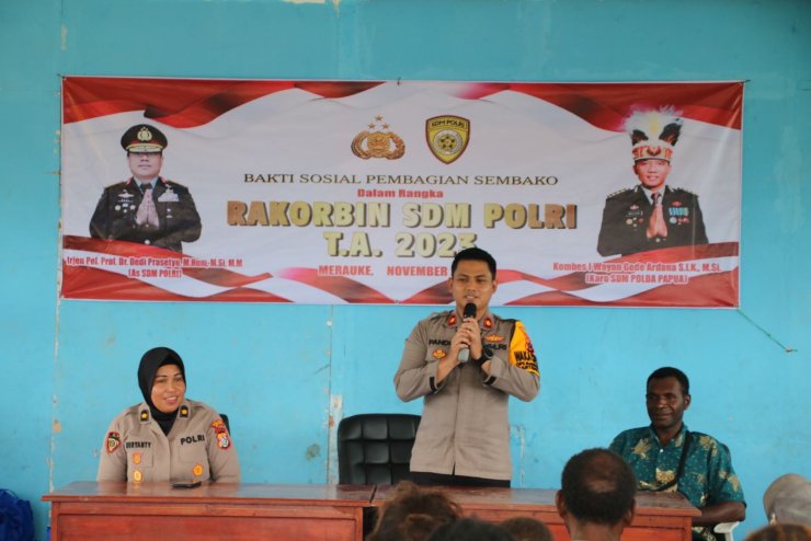 Papuanewsonline.com, Merauke - Sebagai wujud kepedulian Polri, terutama dalam konteks Rakorbin SDM Polri Tahun 2023, Polres Merauke melaksanakan Bantuan Sosial dengan membagikan paket sembako kepada masyarakat di Kampung Kamangi, Distrik Tanah Miring, Provinsi Papua Selatan, pada Senin (6/11/2023).