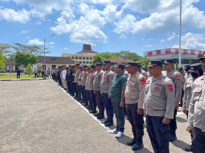 Papuanewsonline.com, Ambon - Komandan Satuan Brimob Polda Maluku Kombes Pol Dostan M. Siregar memimpin apel kesiapan tugas personel Polda Maluku yang terlibat dalam pelaksanaan Operasi Mantap Brata (OMB) Salawaku 2024 di lapangan Letkol Pol Chr Tahapary, Kota Ambon, Minggu (5/11/2023).