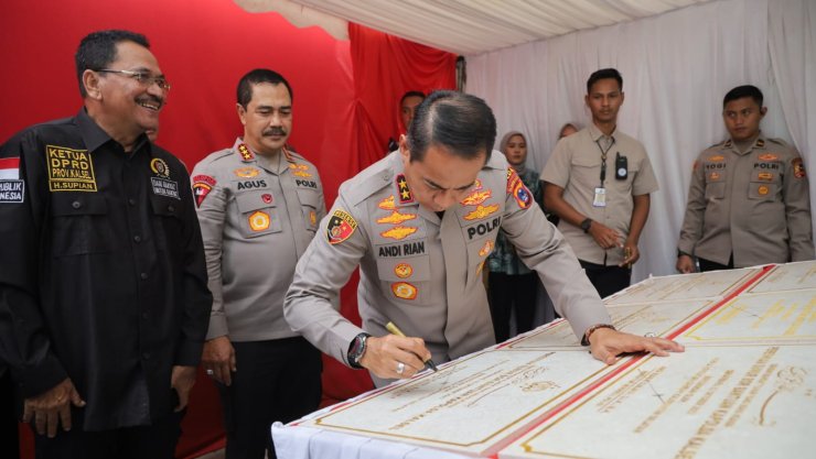 Peresmian yang dipusatkan di Desa Balau, Kecamatan Karang Intan, Kabupaten Banjar, Kalsel, berlangsung khidmat ditandai dengan pemotongan pita oleh Wakapolri Komjen Pol Agus Andrianto, dan penandatangan prasasti oleh Kapolda Kalsel Irjen Pol Andi Rian Djajadi, S.I.K., M.H., yang juga dihadiri dan disaksikan oleh Wakapolda, Irwasda, Pejabat Utama Polda Kalsel, Forkopimda Provinsi Kalsel dan Forkopimda Kabupaten Banjar serta masyarakat setempat.