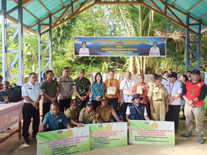 Tak hanya itu, Pj Gubernur dan rombongan juga melanjutkan perjalanan mereka ke pasar kampung Ambai Diru, untuk menyerahkan beberapa paket bantuan penting kepada kelompok petani kakao di Kabupaten Kepulauan Yapen.