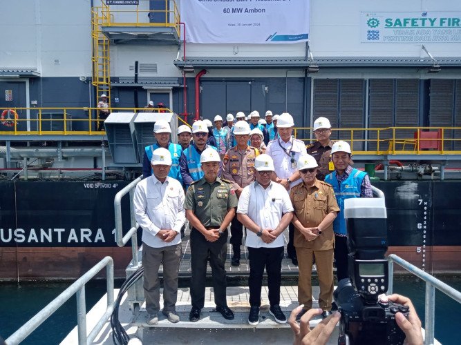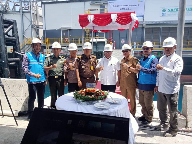 Papuanewsonline.com, Ambon - Direktur Pengamanan Obyek Vital (Pamobvit) Polda Maluku Kombes Pol Wirdenis Herman Sik., M.Si menghadiri acara sinkronisasi pengoperasian kapal listrik Barge Mounted Power Plant (BMPP) Nusantara.