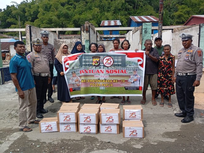 Dirlantas Polda Papua Salurkan 250 paket Sembako Untuk Korban Kebakaran