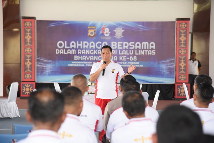 Olahraga bersama yang dilaksanakan itu bertujuan untuk memeriahkan hari ulang tahun ke-68 Polisi Lalu Lintas (Polantas).