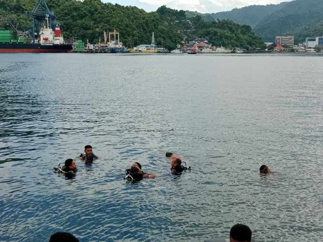 Dalam pelaksanaannya, peserta pelatihan melakukan persiapan dan selanjutnya bergerak menuju perairan Bandar Lampu Merah Jayapura. Secara bergantian melaksanakan pelatihan menyelam.