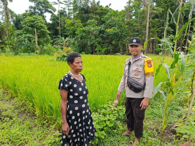 Dukung Ketahanan Pangan, Kapolsek Kouh Polda Papua Sambangi Petani Binaan