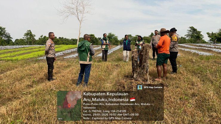 Sebelum penanaman, hari ini Kamis (29/1/2026), dilakukan survey lokasi lahan yang dipimpin oleh Kapolsubsektor KPYS Dobo IPDA Rifai Alkatiri, S.H. Hadir Koordinator BPP Kecamatan Pulau-Pulau Aru, Joel Lagiduay, SST., M.Si, Ketua Team Kerja Penyuluh Kabupaten Kepulauan Aru, Elvinsye Latuperissa S.Pt., M.P, Bhabinkamtibmas Desa Durjela AIPDA M.E.E Pattiasina, Penyuluh Pertanian Desa Durjela dan Personel Polsubsektor KPYS Dobo.