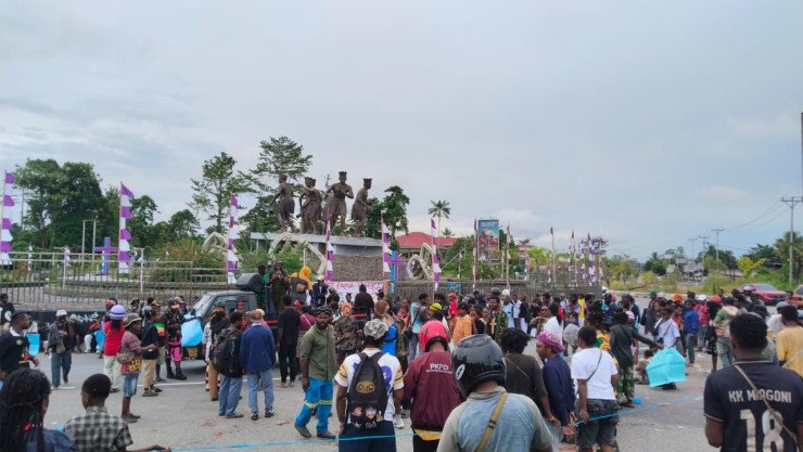 Papuanewsonline.com, Timika – Ratusan massa yang tergabung dalam Front Rakyat Papua wilayah Timika menggelar aksi demonstrasi damai pada Selasa (7/4/2026) sekitar pukul 09.30 WIT. Massa mulai berkumpul dan memadati kawasan Bundaran Petrosea sebagai titik awal pergerakan. Di lokasi tersebut, para pengunjuk rasa sempat menyampaikan orasi pembuka berisi sejumlah tuntutan krusial sebelum melanjutkan perjalanan menuju pusat pemerintahan.