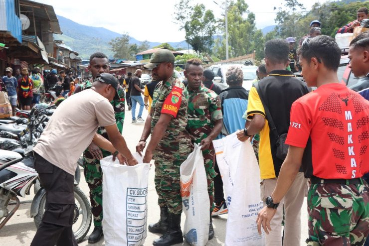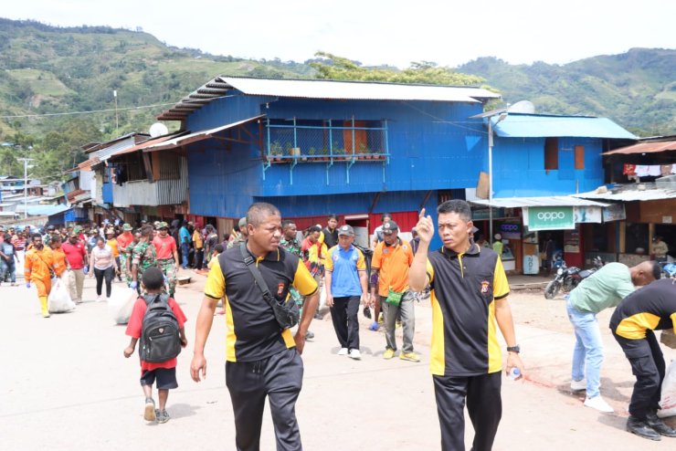 Gabungan TNI-Polri, Pemerintah Daerah, dan Masyarakat Laksanakan Baksos Pembersihan Kota Karubaga