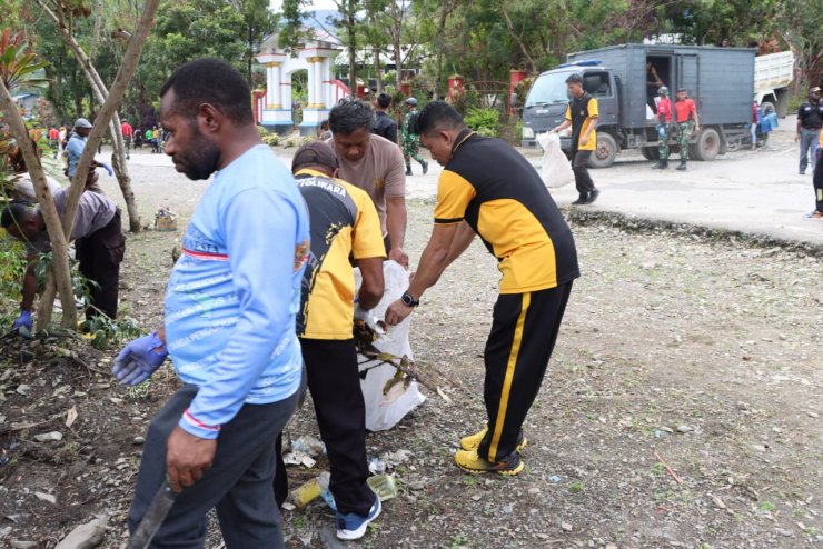 kebersihan lingkungan adalah tanggung jawab kita semua, bukan hanya TNI-Polri dan pemerintah, melainkan seluruh lapisan masyarakat, mari kita bersinergi dalam menciptakan lingkungan yang bersih dan sehat di wilayah Kota Karubaga", ujar Kapolres