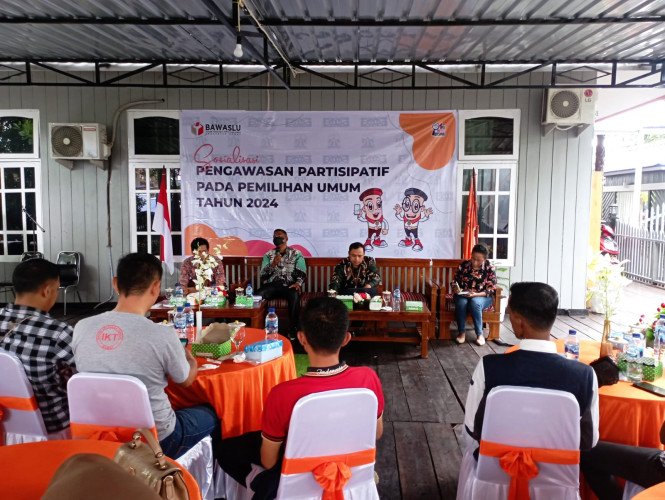 Papuanewsonline.com, Asmat - Badan Pengawas Pemilu (Bawaslu) Kabupaten Asmat menggelar Sosialisasi Pengawasan Partisipatif pemilihan umum (Pemilu) tahun 2024 bagi kaum milenial di Teras Bawaslu. Sabtu (4/11/2023).