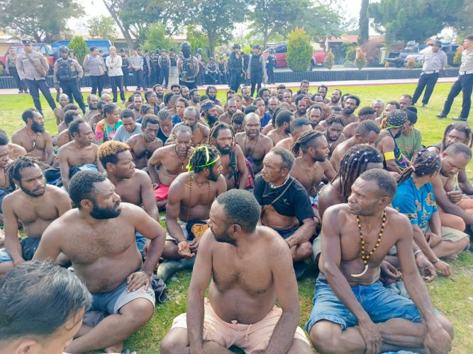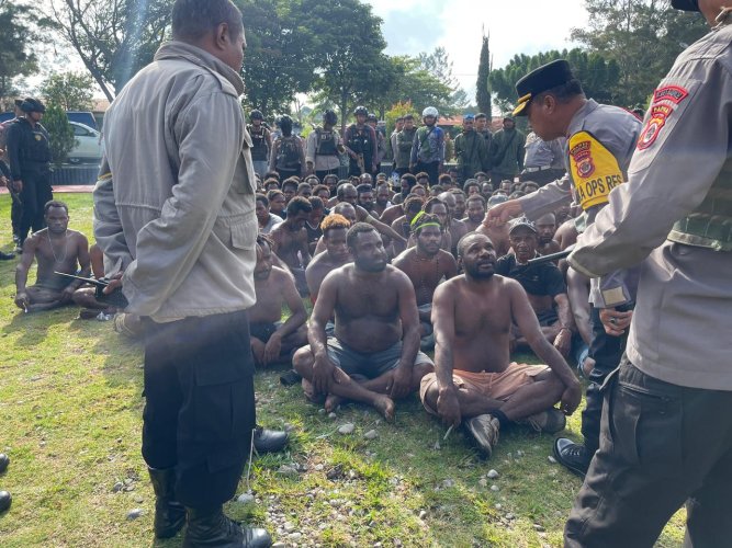 " Kami melakukan penyitaan alat tajam serta mengamankan 69 orang laki laki dan 12 orang perempuan dengan menggunakan 2 truk ke Mapolres Jayawijaya, dan saat masih dalan tahap pemeriksaan," jelas Kapolres.