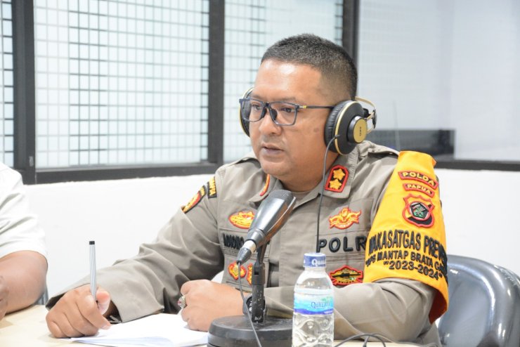 Papuanewsonline.com, Jayapura – Polda Papua, bersama Forkopimda, kembali hadir dalam Dialog Interaktif melalui program 'Polisi Menyapa', di Stasiun LPP RRI Kota Jayapura pada Kamis (19/02). Acara tersebut melibatkan dua narasumber utama, yaitu Kepala BMKG Wilayah V Papua, Justuz Rumakiek, dan Wadir Samapta Polda Papua, AKBP Adiono Dwi W, S.I.K., M.Ap.