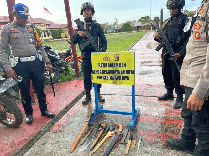 "Untuk menekan angka kriminalitas di Kota Wamena, hari ini kami melaksanakan razia di Jam Kota Hom-Hom Wamena dengan sasaran masyarakat yang membawa senjata tajam, minuman keras maupun benda berbahaya lainnya," pungkas Kapolres.