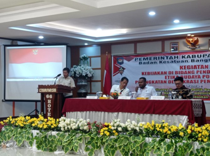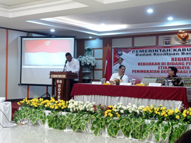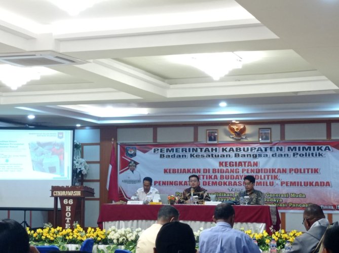 Sementara itu sambutan Bupati Mimika yang dibacakan oleh Staf Ahli, Septinus Timang, menegaskan bahwa Pendidikan Politik dan Etika Budaya Politik bagi Generasi Muda, Masyarakat dan Partai Politik memiliki makna yg sangat penting, karena dapat membangun suatu sistem politik yang ideal yang mampu memenuhi kebutuhan dan kepentingan masyarakat.