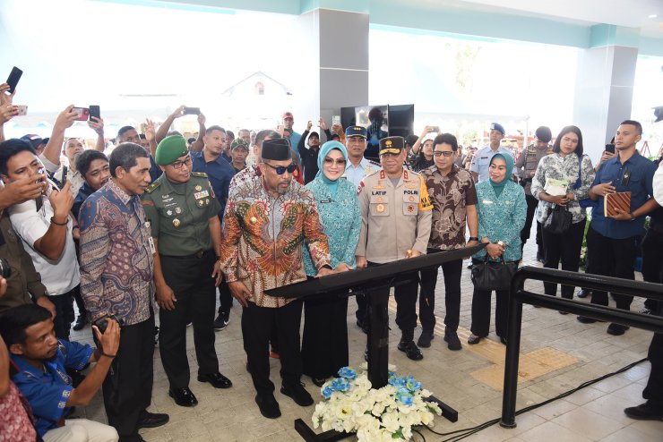 Grand Opening Gedung Pasar Baru Mardika ditandai dengan penekanan tombol sirine dan pemotongan pita oleh Gubernur yang didampingi Kapolda dan forkopimda Maluku.