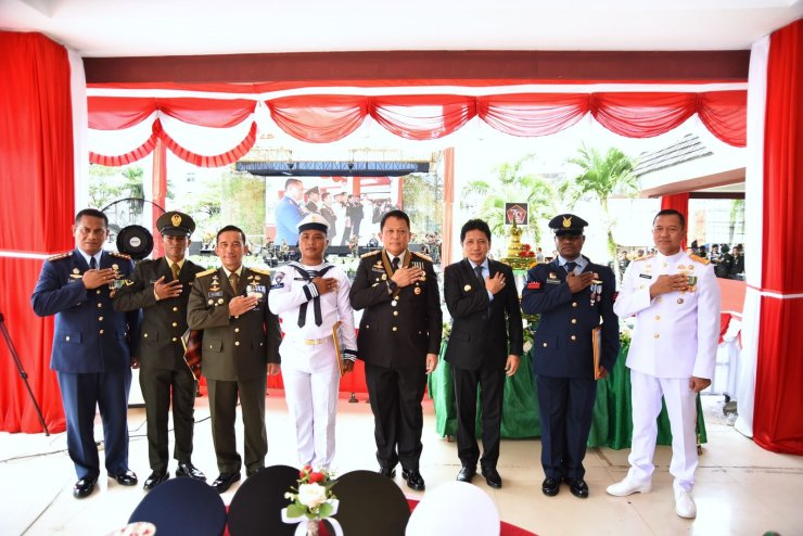 Papuanewsonline.com, Ambon - Kepala Kepolisian Daerah Maluku Irjen Pol Drs. Eddy Sumitro M.Si menghadiri upacara dan syukuran peringatan Hari Ulang Tahun (HUT) ke-79 Tentara Nasional Indonesia yang digelar di Lapangan Merdeka, Kota Ambon, Sabtu (5/10/2024).