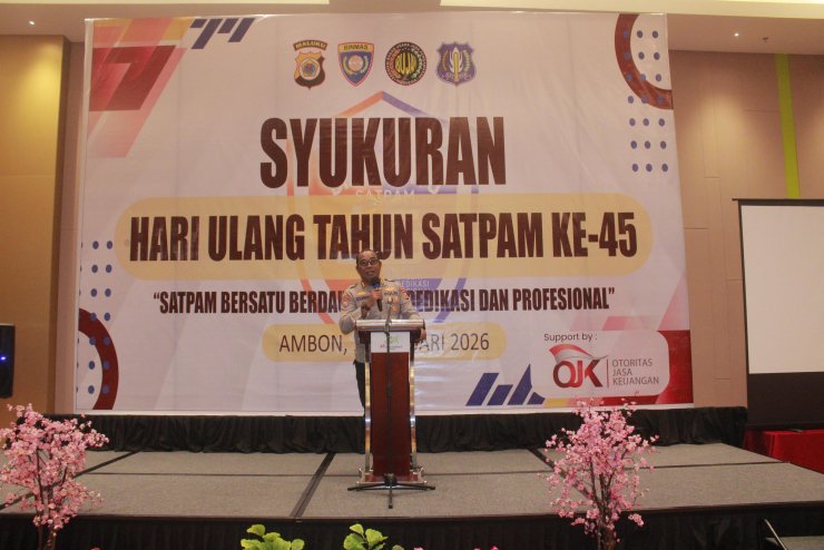 Papuanewsonline.com, Ambon – Direktur Pembinaan Masyarakat (Dir Binmas) Polda Maluku, Kombes Pol Hujra Soumena, S.I.K., M.H, menghadiri Syukuran Hari Ulang Tahun (HUT) ke-45 Satuan Pengamanan (Satpam) tahun 2026.