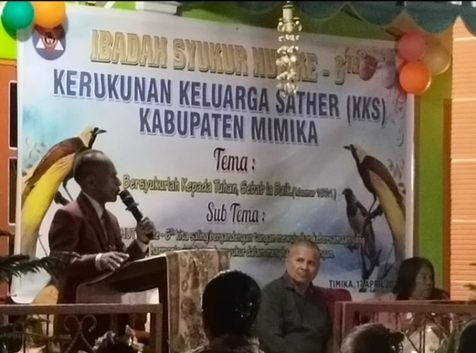 Kerukunan Keluarga Sather (KKS) Kabupaten Mimika menggelar ibadah syukur peringatan HUT ke-6 sekaligus pelantikan Ketua KKS periode 2025-2030, Ibu Diana Domakubun, S.Pd., M.Pd.