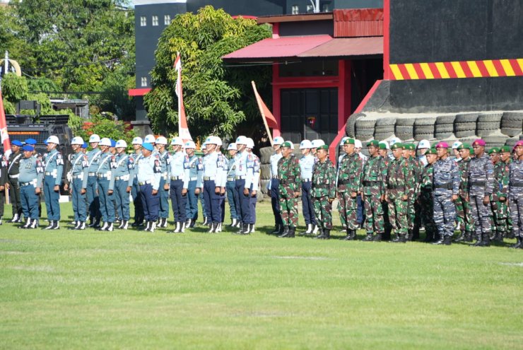 Kegiatan ini berlangsung di Lapangan Apel Mako Sat Brimob Polda Papua, Kota Jayapura, dan turut dihadiri oleh Para Pejabat Utama Polda Papua, Kapolresta Jayapura Kota, Kombes Pol. Dr. Victor D. Mackbon, S.H., S.I.K., M.H., M.Si., Para Pejabat TNI AD, AL, AU, serta gabungan dari Satpol PP, Jasaraharja, Pramuka dan Ormas.