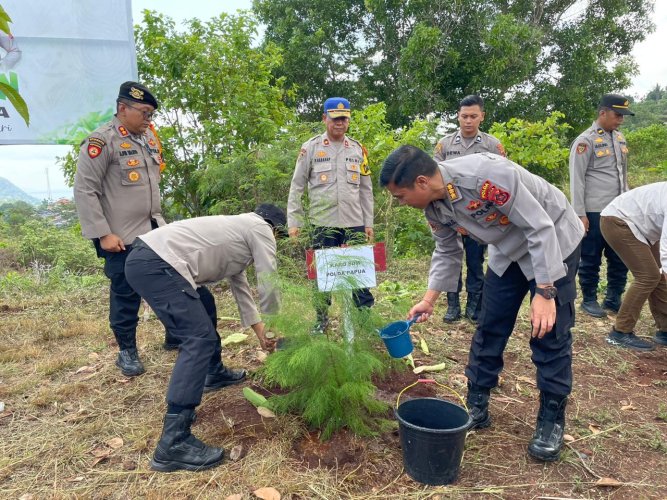 Jaga Kelestarian Lingkungan, Polda Papua Ikuti Aksi Penanaman 10 Juta Pohon Secara Serentak