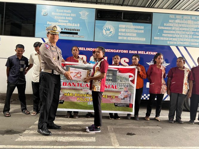 Jelang Hut Bhayangkara Ke-78, Dit Lantas Polda Papua Bagikan Bansos
