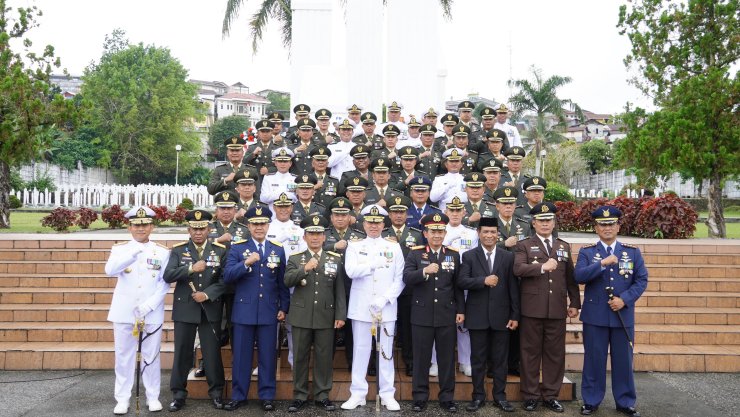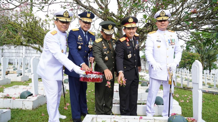 Ziarah dan tabur bunga di TMP Kapahaha Ambon digelar dalam rangkaian peringatan Hari Ulang Tahun (HUT) ke-79 Tentara Nasional Indonesia (TNI).