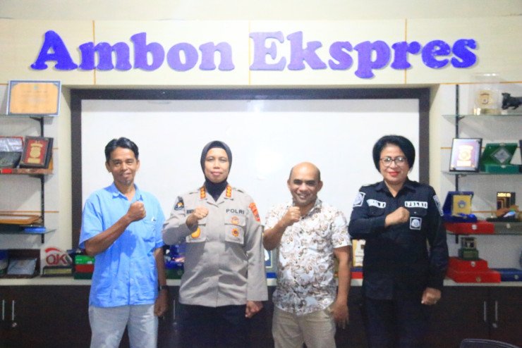 Setelah menyambangi RRI Ambon, Kombes Rositah yang didampingi para Perwira Senior masing-masing Subbid Humas Polda Maluku, Rabu (16/7/2025) kembali menyambangi Direktur Ambon Ekspres, Nasri Dumula, didampingi Pimpinan Redaksi, Hadia Wally.