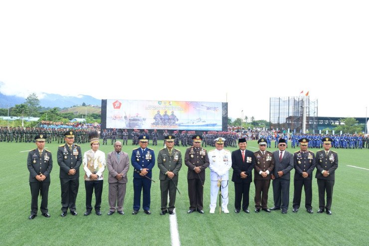 Upacara tersebut dipimpin oleh Pangdam XVII/Cenderawasih, Mayjen TNI Izak Pangemanan, M.Han., sebagai Inspektur Upacara, dan Mayor Kal Teddy Suwaskita P, S.E., sebagai Komandan Upacara.